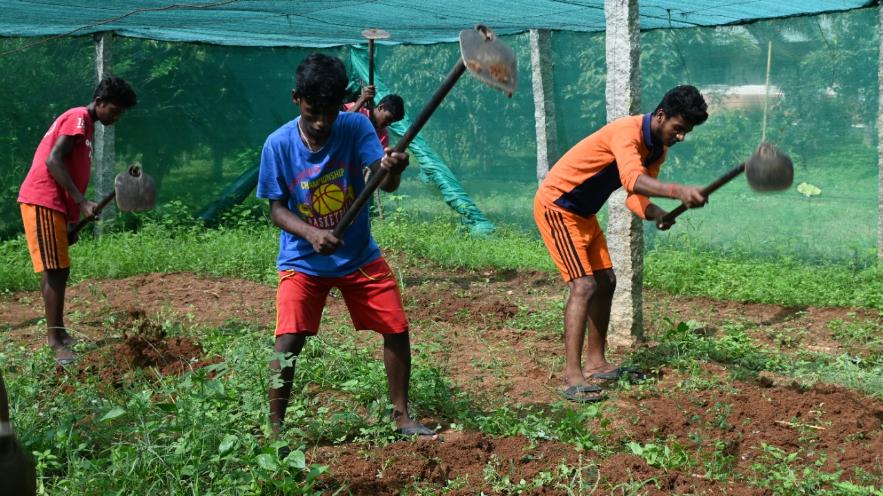 All children accommodated at Snehagram are encouraged to choose their subjects and activities according to their own inclinations. This enhances learning and allows specialisation in a specific field that can be their future employment and source of income. Some decided to specialise in agriculture, others in animal husbandry, others in IT or mechanics. Based on these fields of interest, the centre equipped itself with everything necessary to help the young people acquire effective practical training: fields were created, a greenhouse and a farm were built, seeds, fertilisers and various equipment were bought.